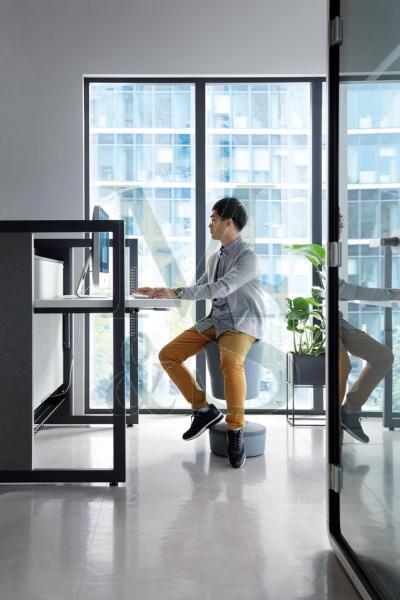 Les changements de position fréquents évitent les affections causées par de nombreuses heures d'inactivité. Le bureau Stand Up R avec la fonction d'une transition en douceur d'une position à une autre, sans interrompre les tâches en cours, soutient une activité professionnelle ergonomique et confortable