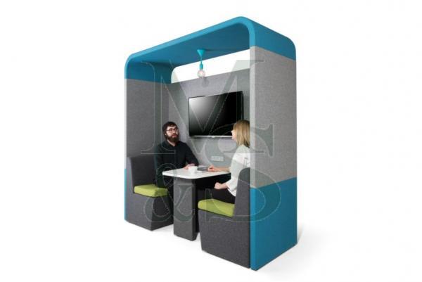 •Système de cabine de réunion autoportant, insonorisant et recouvert de tissu.